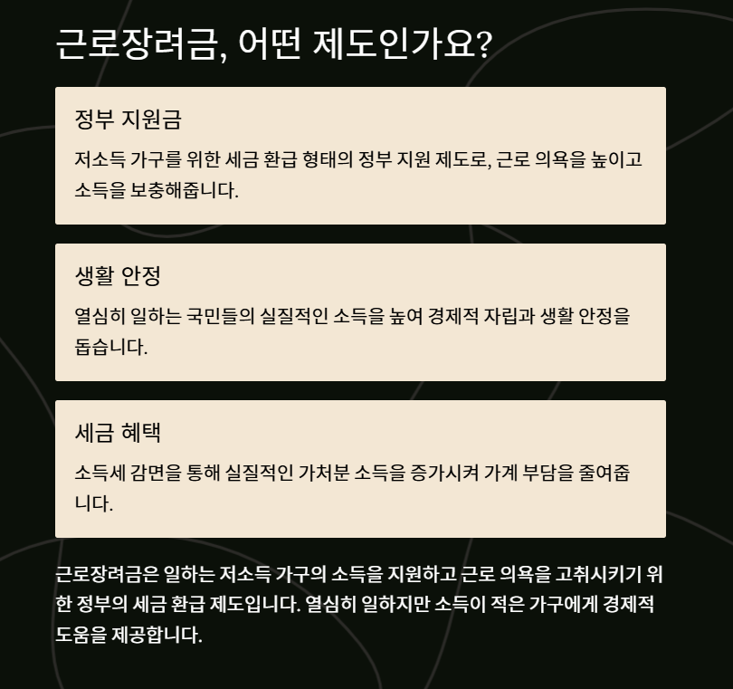 근로장려금은 저소득 근로자, 사업자(자영업자), 종교인을 대상으로 정부가 실질 소득을 보전하고 근로 의욕을 높이기 위해 지급하는 현금성 지원금입니다. 일정 소득 이하의 가구라면, 근로 형태와 관계없이 신청할 수 있습니다.