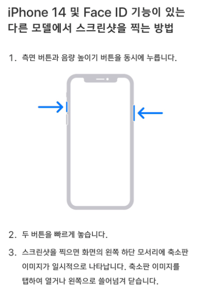 | 아이폰 | 볼륨 업+전원 | X | O | O | 일부 앱(사파리 등) |
