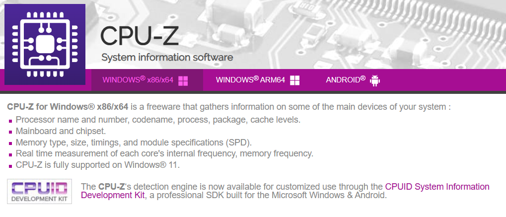 - 공식 웹사이트(https://www.cpuid.com/softwares/cpu-z.html)나 신뢰할 수 있는 소프트웨어 포털에서 최신 버전의 CPU-Z를 다운로드할 수 있습니다.