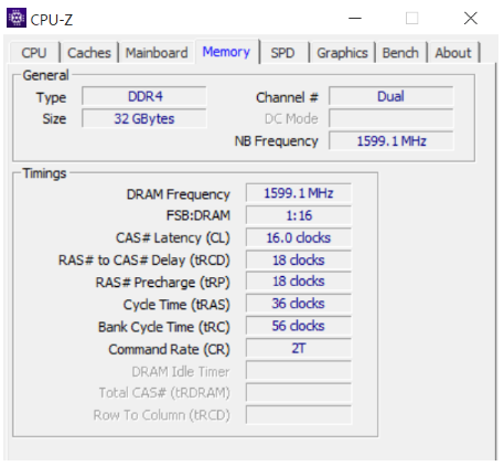 - 타이밍: CL16-18-18-38 등